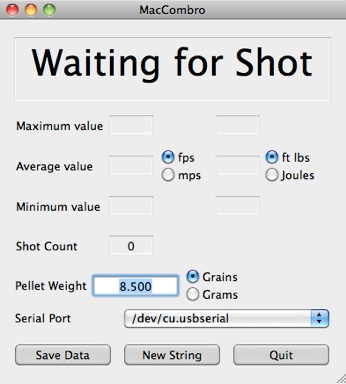 One of the best ballistic Chronographs on the market today is the Combro. Combro has a Windows program to capture the reading to a PC. There isn’t a Mac OS-X version.