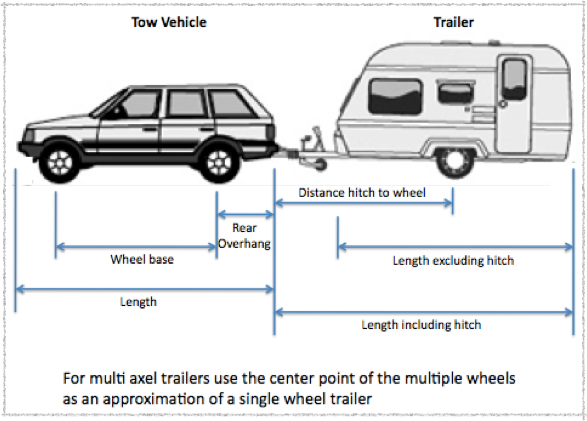 To use the outtracking calculator you need to know: Tow Vehicle length, wheelbase, rear overhang, width and the tracking (distance between the wheels of your car). For the trailer or caravan you need to know the length, length excluding the tow hitch and the distance from the tow hitch to the trailer wheel.